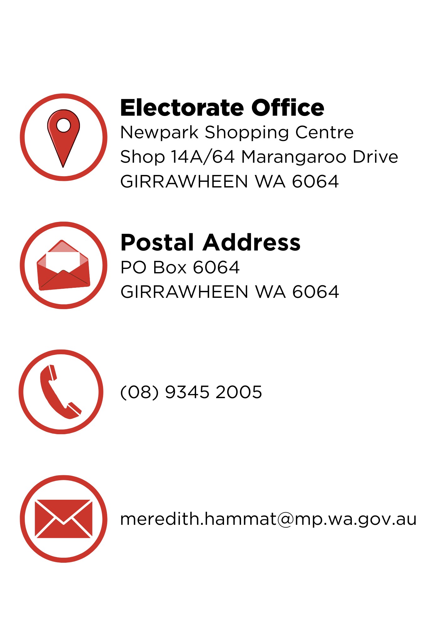 If you reside within the Girrawheen electorate (Alexander Heights, Balga, Girrawheen, Koondoola, and parts of Marangaroo and Mirrabooka), please complete our contact form.