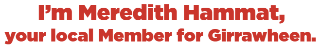 Following the 2025 State Election, her electorate was renamed Girrawheen, one of the most diverse in WA. Meredith is deeply involved in the community and has built strong connections with local residents and organisations, reflecting her commitment to representing and supporting the people of her electorate.